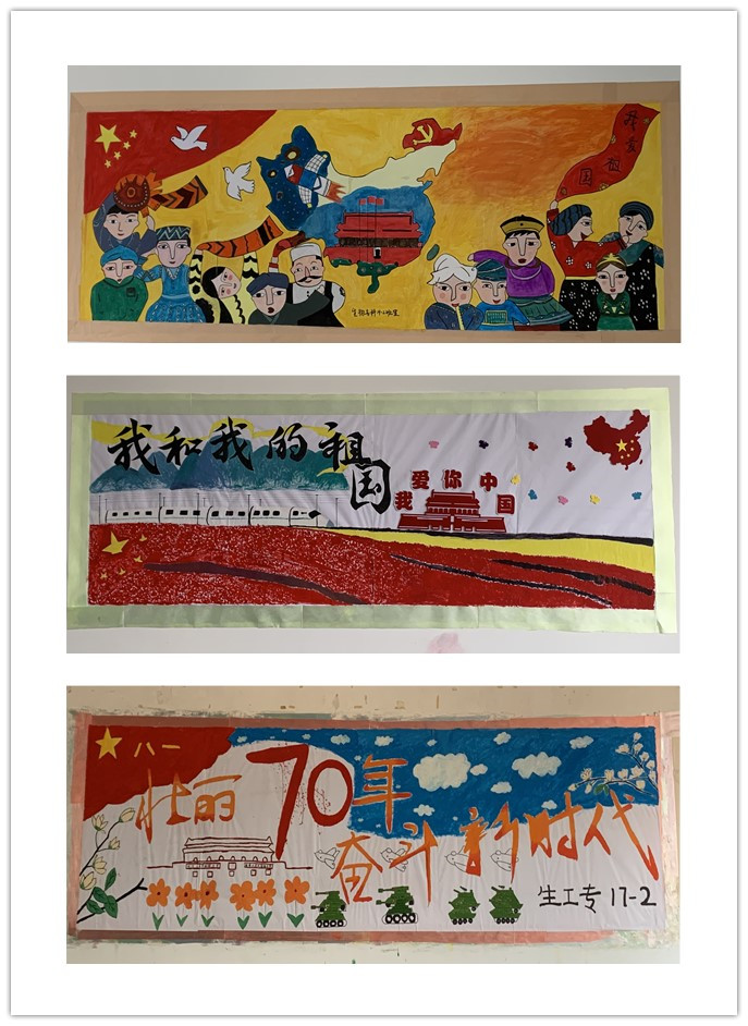活动中,各班级认真组织,精心设计,板报内容围绕我和我的祖国、新中国成立70周年等主题展开,呈现了一幅幅图文并茂、设计新颖的板报作品。同学们通过对一幅幅插图的描绘和一段段文字的构思,表达了对祖国母亲的热爱,诠释了新青年成长在伟大祖国母亲怀抱中的幸福之感。通过从版面布局、色彩搭配、内容展示等方面公平公正的打分,最终生物专科192班和药学专科191班获得本次板报评比活动的一等奖。