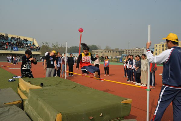 谁说女子不如男,女子跳高比赛中,财信系的张宇晴在大家的掌声和呐喊声中缓缓入场,她神情安定、目视前方,起跑,加速,腾空,过杆,落地。完美的一条弧线永远定格在现场每一个人的心中。她为财经信息系赢得了第一名的荣誉。