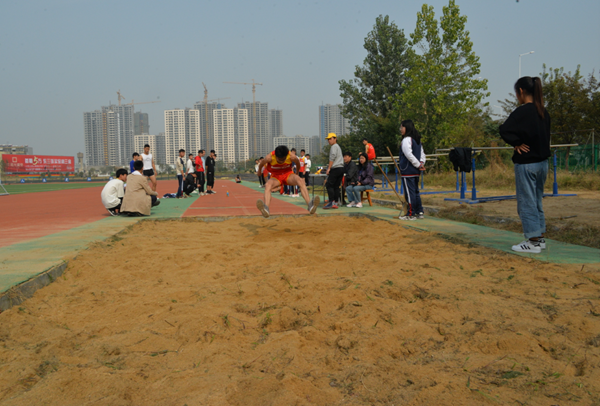 天如幕,日如初,运动场内比赛选手们各个生龙活虎。跳高跳远那跳跃的高度、长度告诉了我们什么才是青春。运动会三级跳比赛的赛场上传来喜讯,机电工程系的徐亚征在运动会上表现优异,再创佳绩,以12.73米的成绩在男子三级跳中勇夺第一名。助跑、跨步、起跳,每个奔跑的瞬间,都承载了他身后不懈的梦想,一个个完美的跳跃,都记录了他激情四射的青春。