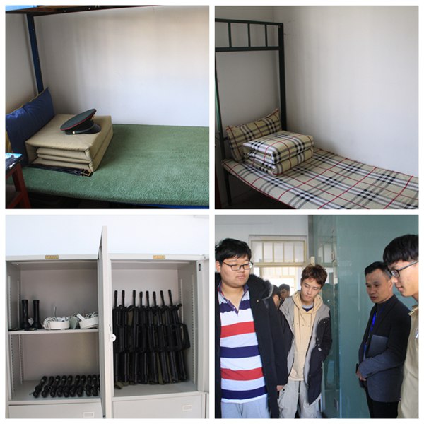首先,朱以光老师为大家介绍了我院国旗班的组建情况,指出国旗班承担着本院升旗仪式、校园纠察及标准化宿舍典范的光荣使命,是我院进行爱国主义教育和道德修养教育的亮点。随后,同学们认真有序地参观了国旗班的各个宿舍。在宽敞朴素的房间里,整齐摆放的物品、干净整洁的地面、整齐划一的床铺、棱角分明的“豆腐块”,都令同学们赞叹不已。大家感受到国旗班严明的纪律和扎实的作风,纷纷表示要以他们为榜样,向坐标看齐,进一步严格要求,奋发进取,将军队精神带入到自己的学习和生活中。