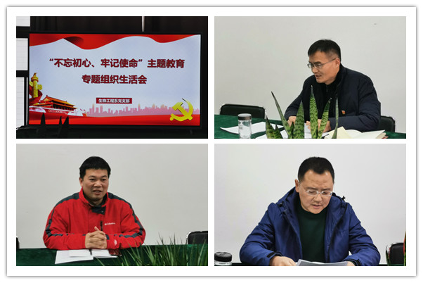 开展专题组织生活会和民主评议活动前,生物工程系党支部认真制定会议方案,广泛征求意见,并开展了支委之间、支委与党员之间谈心谈话。专题组织生活会结束后,全体党员表示,要继续深入学习主题教育理论,把学习成果内化于心,外化于行,要发挥党员的先锋模范作用,为学校的发展贡献力量。