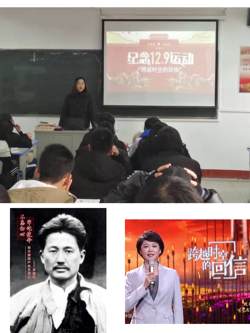 首先,同学们在孙萌老师的带领下,回顾了一二·九运动的历史背景以及这次运动给当时社会带来的重要影响,一同观看了红色家书特别节目“跨越时空的回信——致敬可爱的中国”,节目分“信仰”、“奉献”、“爱国”三个篇章,通过舞台表演、朗诵、访谈等形式,展现了伟大的无产阶级革命家、军事家方志敏烈士“爱国、清贫、创造、奉献”的精神,烈士的亲属、晚辈,战士等用一封回信,告慰英烈,如今国富民强,《可爱的中国》中描绘的美好幸福景象已经实现。