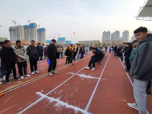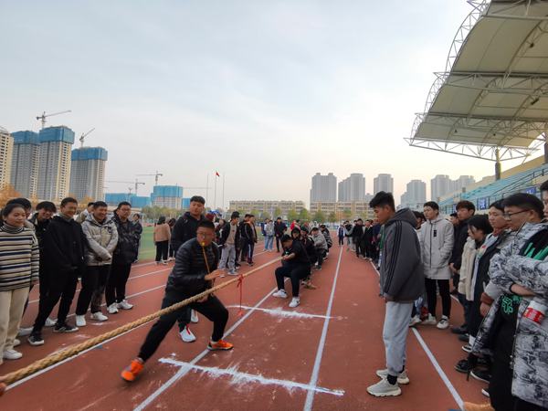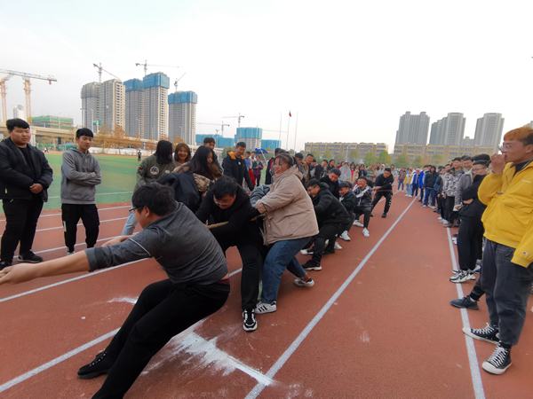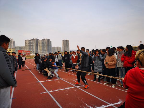 12月12日,深冬的体育场热火朝天,学院阳光体育节系列活动-拔河比赛在田径场顺利举行,六系近200名学生参加了活动。