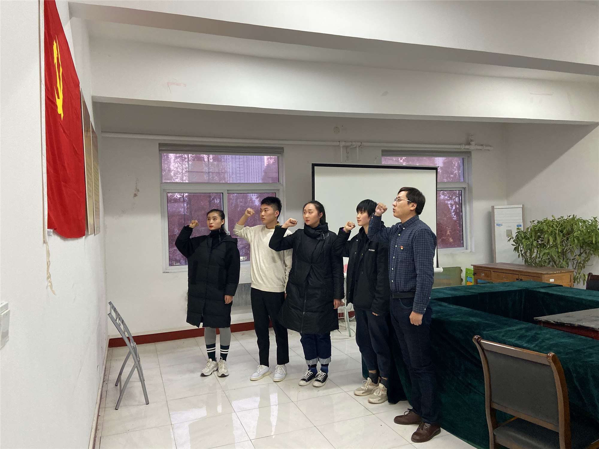 按照议程,首先由曾小芮、宋鉴瑾、顾欣瑜、宋亚楠4名发展对象相继汇报自己对党的认识、入党动机、本人履历及现实表现,培养联系人分别介绍各自的培养考察情况,组织委员关滢宣读了党内外群众意见及政审情况,与会党员进行了充分讨论,一致认为上述4名同学基本具备党员条件,同意其入党。经无记名投票,全票通过,同意接收曾小芮、宋鉴瑾、顾欣瑜、宋亚楠4名同学为中共预备党员。会上,党支部副书记陶佩琳对新入党员提出三点要求:一是加强学习,增强党性观念;二是不断进取,提高自身素质;三是坚持服务,强化责任担当。4名预备党员表态一定不辜负党组织的信任和系部的培养,时刻以党员标准严格要求自己。在支部宣传委员陈子雨老师的带领下4名新入预备党员在党旗下庄严宣誓。