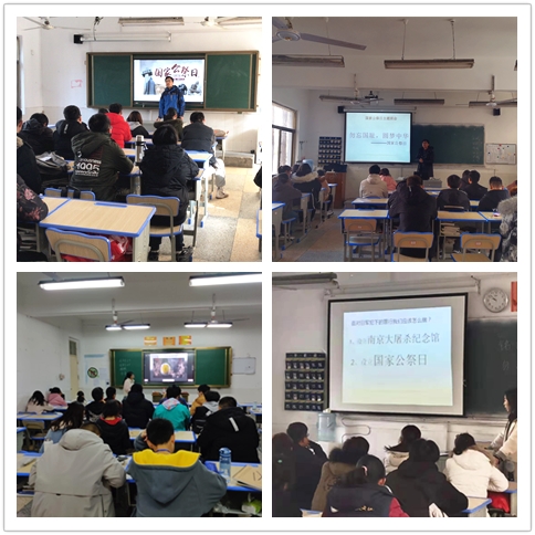 12月10-11日,各班开展了以“铭记历史、勿忘国耻”为主题的爱国主义教育主题班会。通过演讲、朗诵、观看视频、撰写观后感等多种形式,帮助学生了解南京大屠杀死难者国家公祭日的确立背景、时间及意义,引导当代大学生直面惨淡过去,正视铭心苦痛,增强同学们民族振兴的责任感,真正把爱国之志变成报国之行。今天,为复兴中华而勤奋学习,明天,为创造祖国辉煌未来而贡献力量!