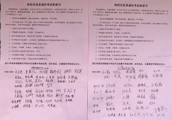 “讲诚信,正考风”——财经信息系举行诚信考试承诺书签字活动