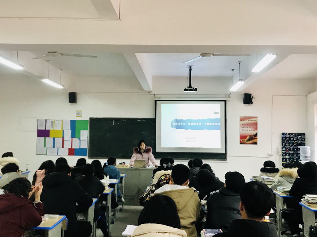 期末考试在即,为增强同学们的诚信考试意识,给同学们营造一个良好的考试氛围,医学护理系于12月30日开展了诚信考试主题教育活动,活动由医学护理系姚静怡副书记主持,医学护理系全体同学参加了此次活动。