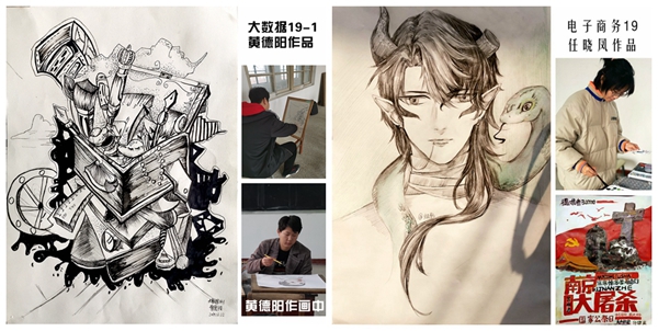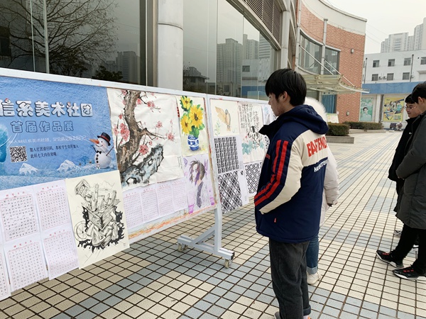 为进一步丰富校园文化生活,提高学生的审美意趣,促进财经信息系计算机平面设计专业建设,财信系美术社团于12月30日下午在学校食堂门口举行书画作品展览活动。财信系美术社团自2019年11月初开办以来,在王雪莹老师的指导下,全院学生积极加入,创作出了许多优秀作品。