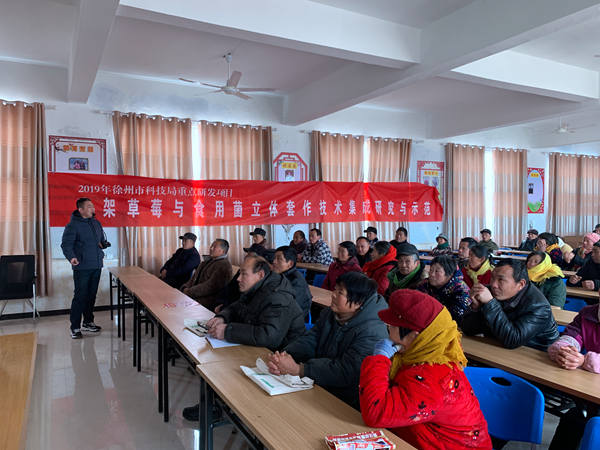 “站着摘草莓,弯腰采蘑菇”,这是2019年市重点研发项目“高架草莓与食用菌立体套作技术集成研究与示范”的成果落地转化的缩影。据了解,该项目由市现代农业生物技术重点实验室凤舞剑副教授领衔实施,现已筛选出高架适栽草莓品种和菌种各3个,制定立体套种模式下肥水运筹与病虫绿色防控方案。在省定经济薄弱村贾汪区耿集镇赵庄、王集等草莓基地探索建立了农民培训田间课堂,累计受训300多人,发放技术资料1000余份,微信群、惠农网交流记录1200余条,这种“线上+线下”的农技指导深受莓农称赞。