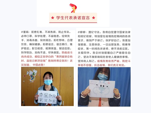 校园防疫,事事都是责任;从我做起,人人都是战士。本次主题团日活动是我院入学防疫教育方案中的系列活动之一。通过学生的自主承诺,激发他们以高度的自觉性和主动性参与到校园防疫和学习工作中来。同时,农林学子也正用实际行动践行着自己的战“疫”宣言。让我们继续携手,做正能量的“徐生人”,以共青团员的青春力量驱散疫情阴霾,迎接明媚阳光!