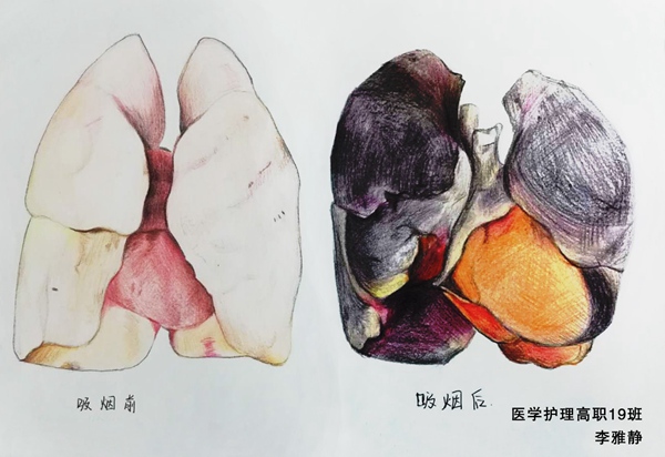 卫生健康学院举办“世界无烟日——吸烟前后肺部解剖对比图”绘画比赛