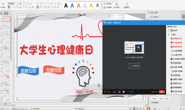 我院通过线上线下渠道对学生进行心理健康教育有关内容进行宣传和心理健康知识普及。首先,我院积极创设学院心理环境,通过微信公众号、院宣传板、横幅、黑板报等渠道宣扬积极心态;其次,我院教师通过线上媒体带领学生开展心理主题教育班会课,围绕“感悟生命”、“朋辈互助”等主题引领同学们进一步提高心理素质。
