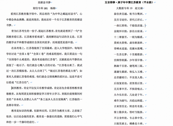 江苏自古崇文重教,教育发展源远流长。为更好地发挥江苏教育博物馆(数字馆)“展示江苏教育成就的窗口、传承江苏教育文化的中心、研究江苏教育历史的平台”功能,信息管理学院于5月11日—5月30日组织全院学生参加“我看江苏教育“大学生征文比赛活动。各班级积极组织、投稿,共推荐优秀作品20余篇。同学们结合江苏教育博物馆(数字馆)内涉及的与江苏教育有关的人物、场景、故事、实物等,或追溯历史,或怀念古人,或研究某一史料……与大家一起分享自己对于江苏教育的理解。通过本次活动,既丰富了学生的文化生活,也展示了我院学生的人文底蕴和人文素养。