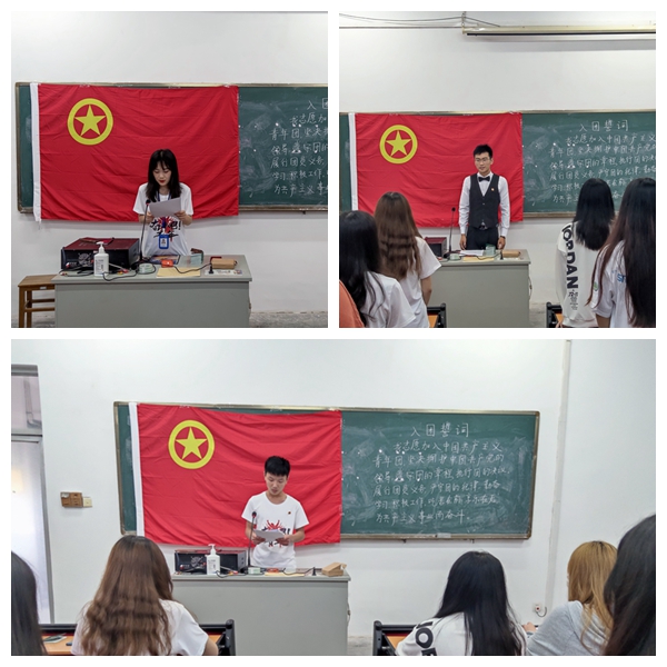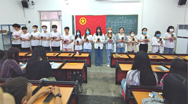 6月23日中午,信息管理学院团总支在实训楼108教室举行了2020年度新团员入团宣誓仪式,16名学生在团总支书记张瑶老师和老团员代表的共同见证下正式成为一名光荣的共青团员。宣誓仪式按照齐唱国歌、宣读名单、新老团员代表发言、佩戴团徽、颁发团员证、入团宣誓、老师讲话、合唱团歌八个环节依次进行。团总支张瑶老师在对新团员表示祝贺的同时提出了新的要求,希望大家记住自己在团旗下的誓言,不忘初心,勤奋学习,勇于钻研,争做表率,牢记青春责任,永葆蓬勃向上的进取精神。