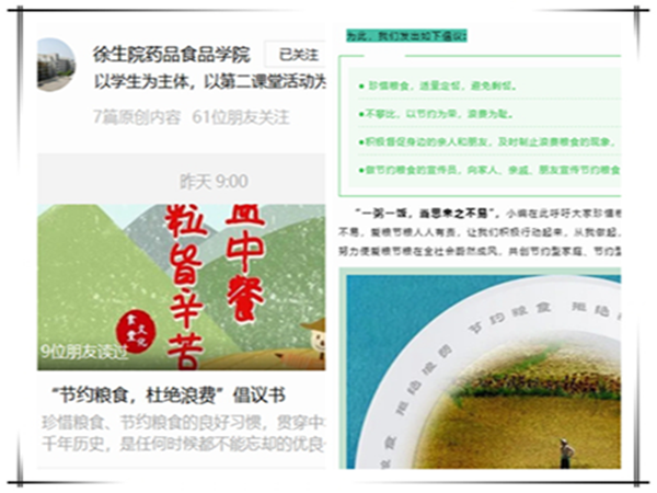 为积极响应习近平总书记提出的“厉行节约,反对浪费”的号召,引导我院学生做爱粮节粮的践行者,减少舌尖上的浪费,努力营造厉行节约的良好风尚,我院于8月至9月开展了“珍惜粮食、节约用餐”主题教育活动。