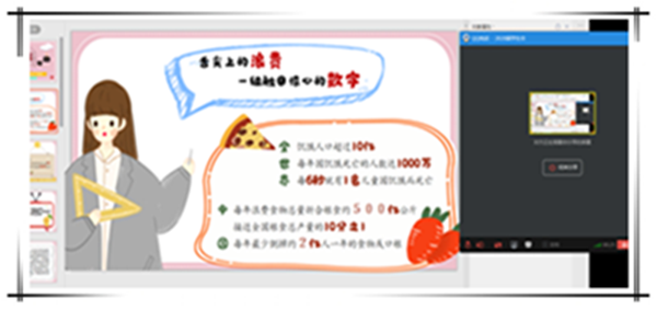 我院老师对学生进行了线上主题教育活动,通过线上讲解,引导学生行动起来,响应文明餐桌号召,践行“光盘行动”,争做勤俭节约好学生。