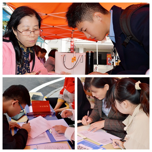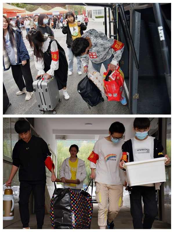 10月10日清晨7点,学院工作人员、班主任老师和学生志愿者全部提前到岗,为接待新生做好充分准备,确保迎新工作有序进行。在迎新现场,校领导、学工处、财务处、后勤处等职能部门老师和学院辅导员、班主任坚守岗位,各部门统筹协调,帮助新生快速完成报到、缴费、收取材料等工作;志愿者们热情接待新生,指导新生使用“易班”app进行扫码报到,耐心接受咨询,引导新生办理入学手续,帮助搬运行李,带领新生迅速熟悉校园。迎新工作人员一张张热情的笑脸,一句句亲切的问候,一项项贴心的服务,让初来乍到的新生感受到了学校的温暖与关怀,秋日的校园处处洋溢着欢快的蓬勃朝气。