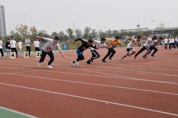 “我运动,我健康,我快乐”的青春号角吹醒了明媚的阳光,在深秋的体育场上,尽显学子青春本色。