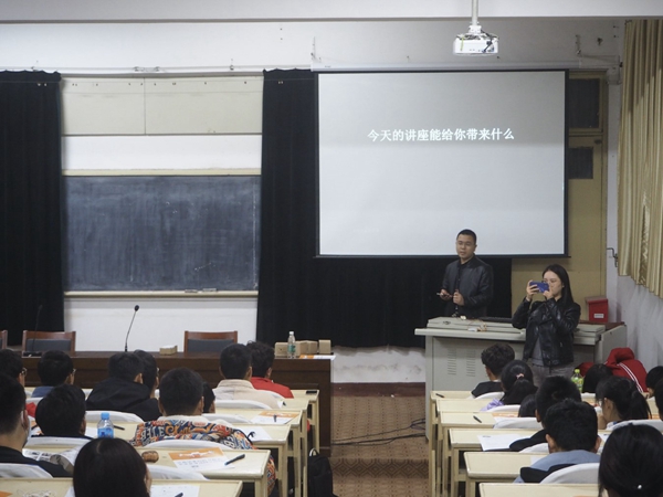 梁湘老师结合自己的成长经历,和同学们分享了三点心得:一是要综合个人兴趣爱好找到自己钟爱的事业;二是要先把自己做好,而后让工作主动来找;三是要懂得交换的概念,想要得到就要付出。最后,梁湘老师还为同学们当场做了示范,引来了同学们阵阵掌声。