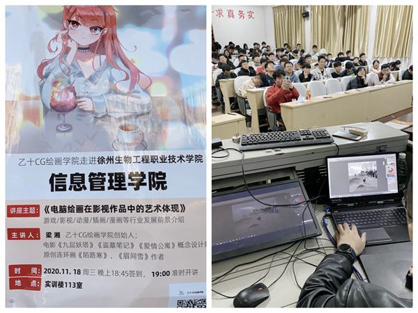 为助推专业建设,促进视觉艺术与信息文化的交流,提升学生的创意思维、国际视阈和格局意识,全面推进学院“治人文、精技术”教育教学改革,11月18日,信息管理学院邀了国内知名概念设计师、乙+CG绘画学院创始人梁湘在云龙校区实训楼B113为同学们带来了一场主题为《电脑绘画在电影中的艺术体现》的讲座,共130余名学生参加了此次讲座。