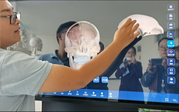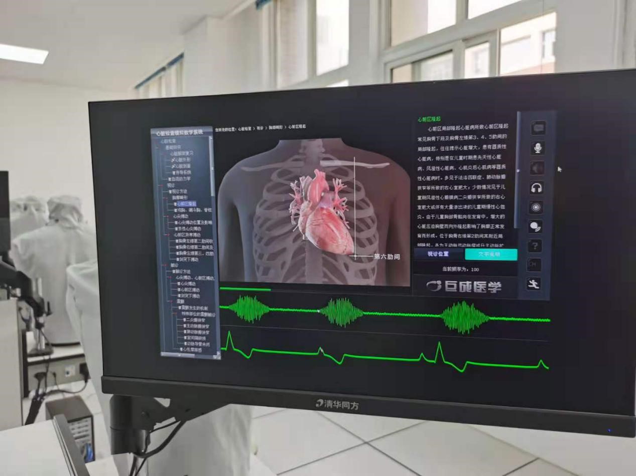 在健康评估实训室,培训专家以心肺听诊为例向教师们演示了设备的操作流程,使用过程中的注意事项,以及各种问题的处理措施,并对教师提出的疑问一一做了详细的解答;在解剖实训室,专业教师们对数字人教学系统软件进行了系统学习。在培训的过程中,大家不仅认真聆听了培训师对设备使用和维护方面的讲解,还与培训师积极互动、分享、协作。