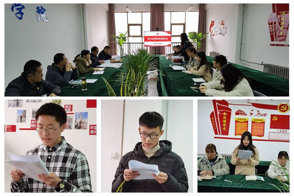 11月24日下午,药品食品学院学工党支部在1号教学楼302党员活动室召开党员发展大会,会议由学工党支部书记王娟主持,支部全体党员及拟发展对象参加了此次会议。 大会主要议题是讨论石涵等9名发展对象能否被接收为中共预备党员。会议根据《中国共产党发展党员工作细则》要求,严格按照党组织接收预备党员程序,首先由发展对象们逐一宣读《入党志愿书》,并向党组织汇报自己对党的认识、入党动机及在校表现等,随后由入党介绍人介绍其培养情况,党总支组织委员周本谦向大会报告各入党积极分子考察期间的综合表现情况,并组织与会正式党员投票表决,全体党员一致同意发展石涵等9名同志成为中共预备党员。 伴随着庄严的《国际歌》,新发展的预备党员怀着无比激动的心情,面向鲜红的党旗,庄严宣誓。接着,石涵同志代表新发展的预备党员表示,将不忘初心,严格按照党员的标准要求自己,深入学习党的理论知识,不断提高自己的思想素质和党性修养,争做一名合格的共产党员。最后,药品食品学院党总支书记丁永辉讲话,他向9名同志表示祝贺,希望全体学生党员在未来不断自我完善、自我提高,端正入党动机,希望毕业生党员能继续发挥党员先锋模范作用,以共产党员标准严格要求自己。 会后,学院党委委员、组织部部长赵宇善受学院党委指派与9名预备党员谈话。9位预备党员逐一详细汇报了自己的基本情况以及入党体会。赵宇善对9名预备党员表现出的政治素养给予了充分肯定,并对他们提出三点希望:一是要坚持理论学习,进一步巩固党章的基本内容;二是要加强时政学习,对国家新的政策和十九届五中全会精神要全面了解;三是要加强社会实践,通过社会实践把为人民服务的宗旨落在实处。