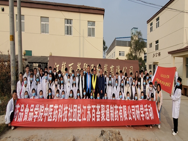为促进学生对中草药知识、中草药生产车间和生产工艺的直观认识,我院于12月初组织中医药文化社团学生赴江苏百荟聚通制药有限公司开展企业研学活动。公司负责人首先对企业情况和参观要求进行说明,随后同学们跟随负责人参观了公司成品仓库、加工车间和成品展馆。参观进程中,企业负责人和我院老师对各类中草药和相关制药机械进行详细讲解,同学们在参观交流中学到了丰富的中草药鉴别和制药知识。