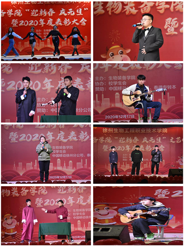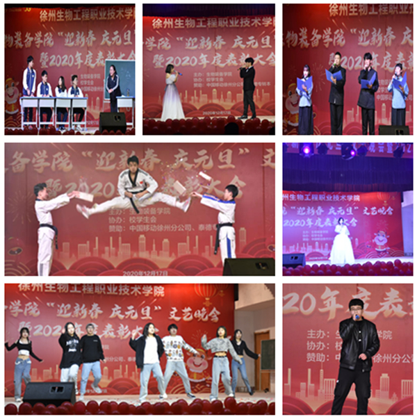 春生夏长,秋收冬藏,时值仲冬正是孕发生机的季节。12月17日,生物装备学院全体师生欢聚在学校大礼堂,喜迎新年,共庆元旦,成功举办“迎新年 庆元旦”文艺晚会暨2020年度表彰大会。校党委委员、副校长王安雷及相关部门处室、各二级学院负责人、中国移动公司和泰德专转本领导出席了本次晚会。 本次晚会共有16个节目,其中包含激情的舞蹈,动情的演唱,精彩的小品,除此之外还有相声、脱口秀、吉他独奏、朗诵、跆拳道、大合唱等各类节目轮番上映,让人眼花缭乱。节目精彩纷呈,处处洋溢着青春活力。 2020年,生物装备学院抢抓机遇、逆势而上,办学规模跨越式增长,专业转型初见端倪,全院师生在教育教学、技能竞赛、社会实践、文体活动等方面捷报频传,喜事连连,展现了我院学生良好的精神风貌,期间涌现出一批表现突出的先进集体和优秀个人。大会期间,学校领导、相关处室及各二级学院领导为我院获奖师生颁发了荣誉证书,并鼓励获奖集体和个人不断奋进、再创佳绩。 本次大会在生物装备学院师生的共同努力下获得圆满成功,充分体现了我院学子青春昂扬、奋发向上的美好风貌,对校园文化建设和学院高质量发展起到重要推动作用。