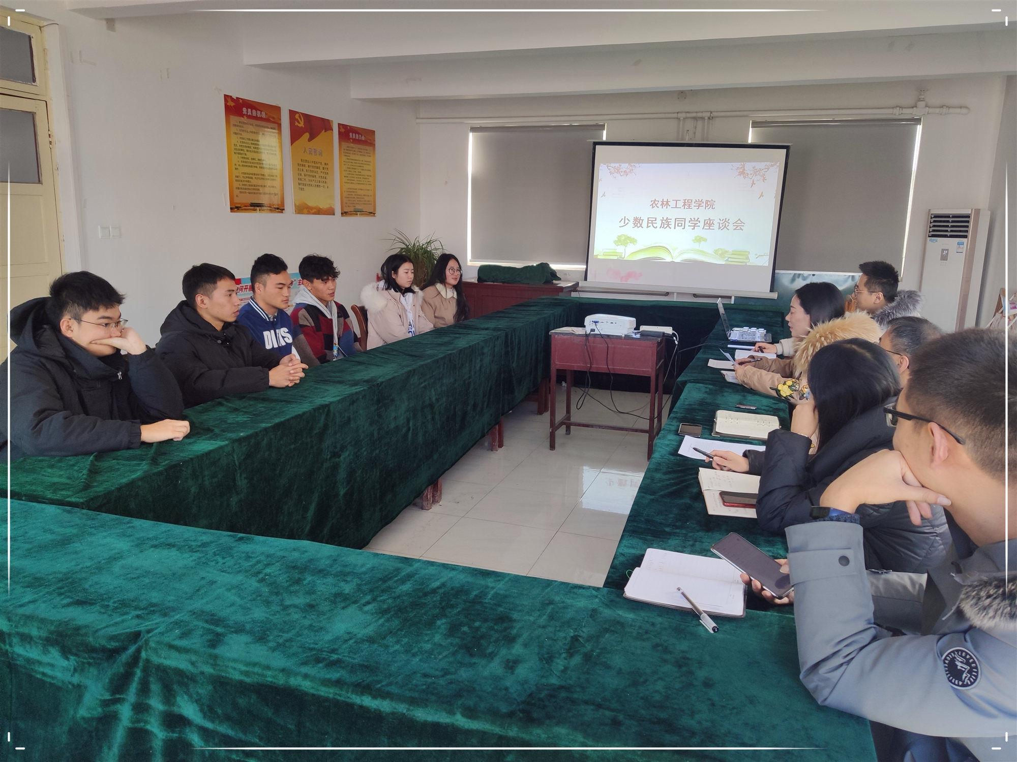 12月31日下午,农林工程学院召开少数民族学生座谈会,来自彝族、瑶族、藏族、苗族、满族等五个少数民族的2020级学生参加,学院领导、班主任代表出席座谈会,学生科科长陈子雨主持会议。